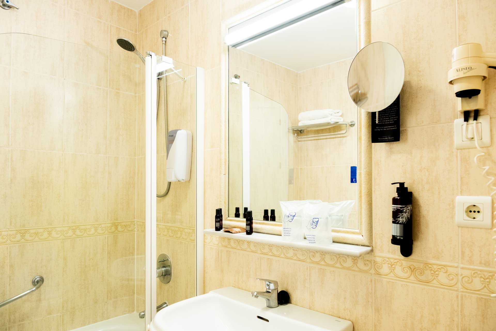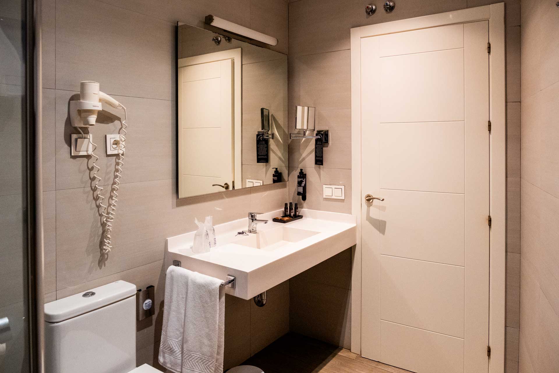 Comfortable and bright room with one double bed (210cm) or two twin beds, private bathroom, air conditioning, minibar, flat-screen TV and free Wi-Fi. Just steps